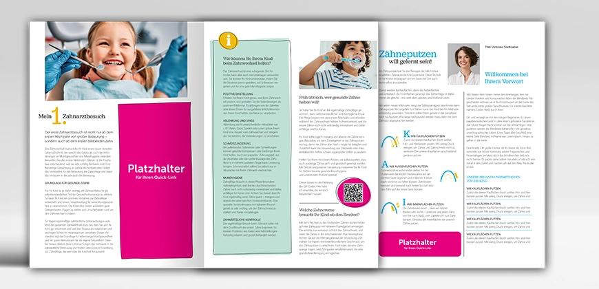 Abhängig von Channel, Format und Seitenzahl präsentieren PREmade.Magazine auf eigenen Doppel- und Einzelseiten Ihre Praxis. Quick-Links verbinden Ihre Inhalte mit dem digitalen Angebot.